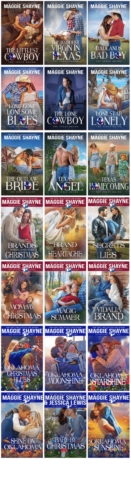 My stories are also small town contemporary romances all about family, loyalty and love, like The Texas Brand Series, The Oklahoma Brands, and The McIntyre Men.